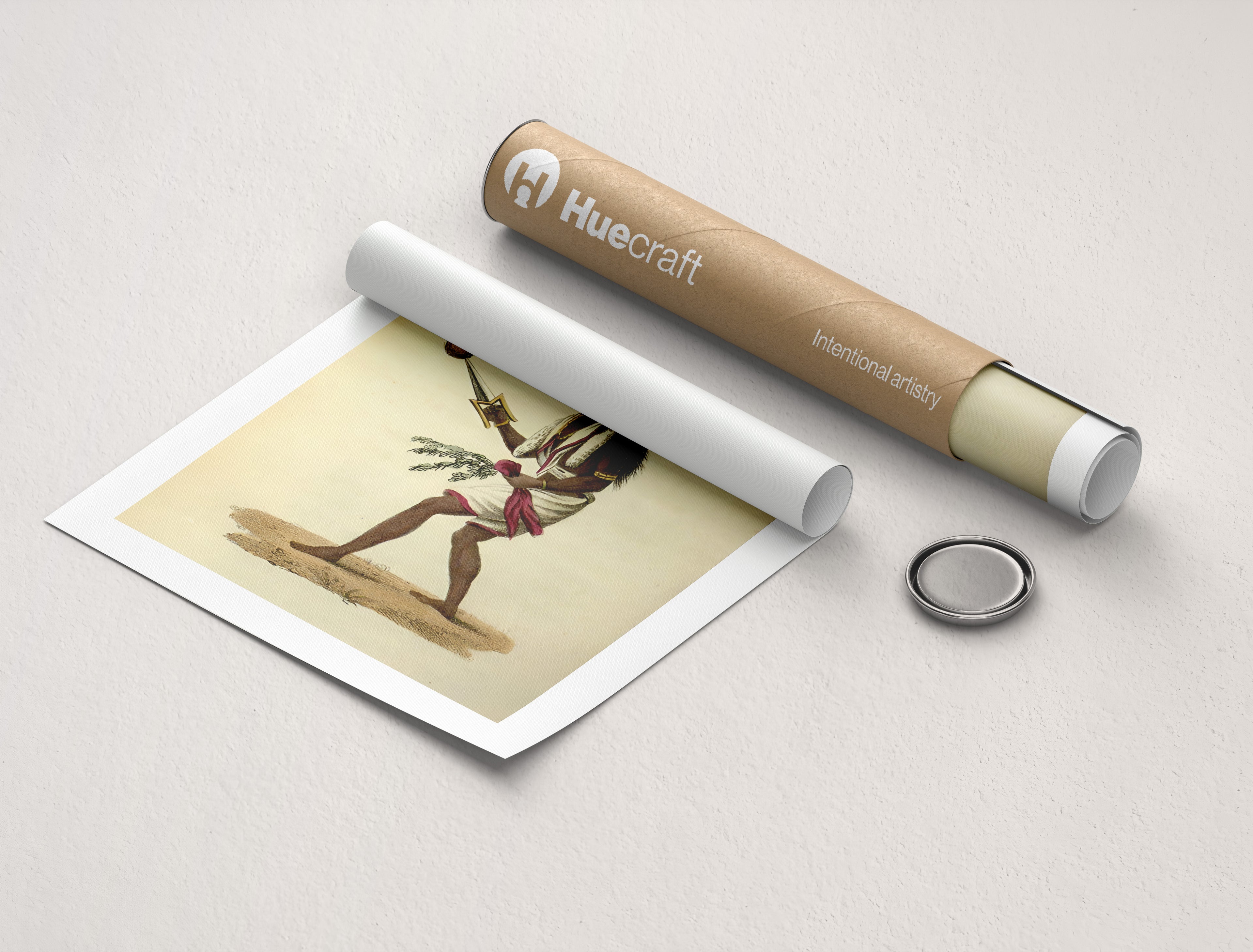 Huecraft’s archival art print preserves the engraving’s delicate linework and restrained coloration using museum-grade paper and pigment inks. The result is a gallery-quality reproduction that honors both the historical document and the living culture it represents.