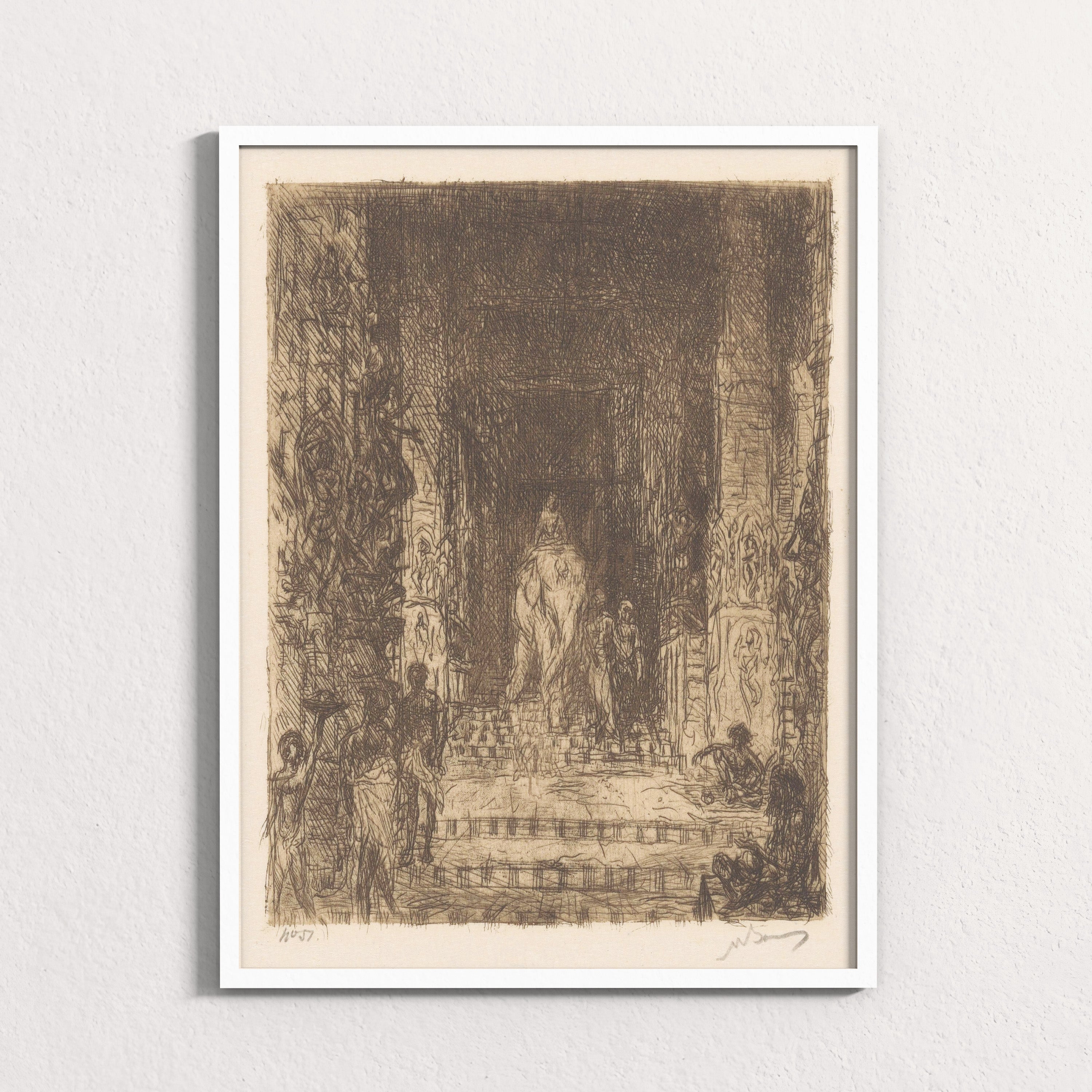 Reproduced as a Huecraft archival art print, this piece is printed with museum-grade inks on premium fine-art paper, preserving the etching’s delicate linework, depth of shadow, and tonal subtlety with gallery-quality clarity.