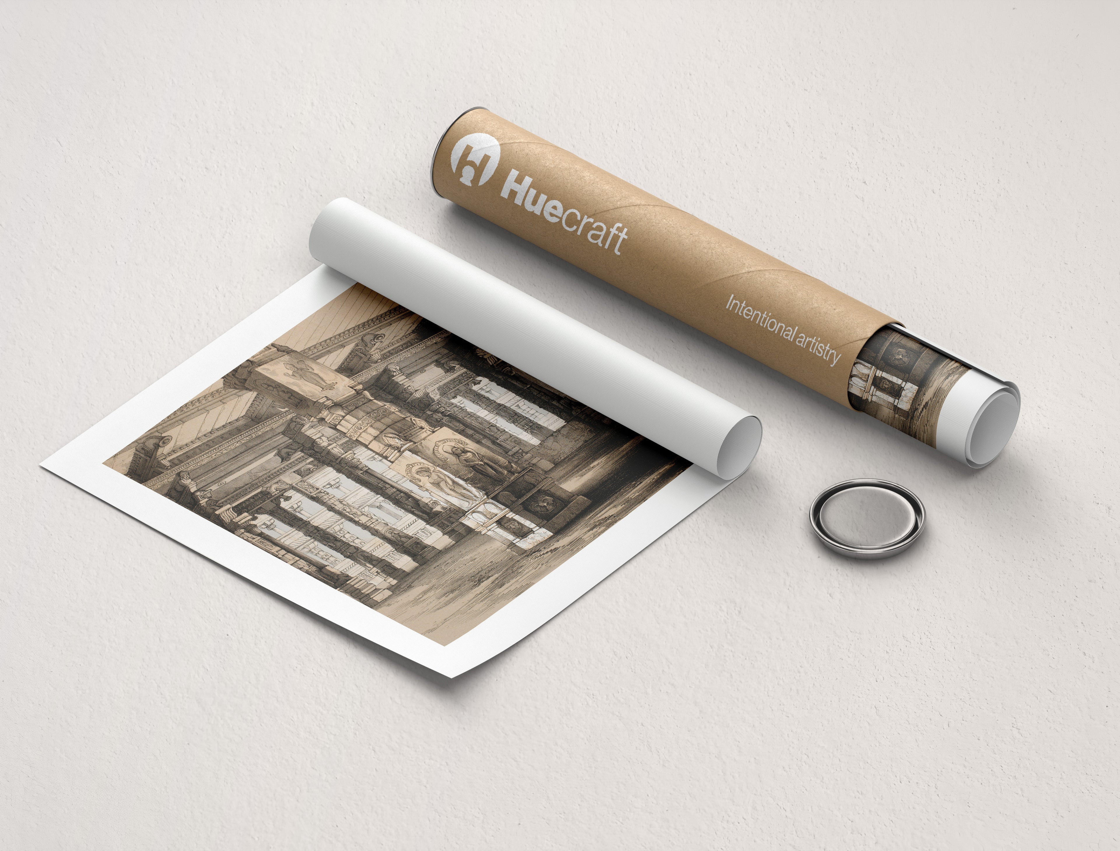 Printed as a Huecraft archival fine art print, the tonal subtlety and architectural depth are preserved with gallery-quality fidelity. Every line, shadow, and carved detail retains the integrity of the original lithograph.