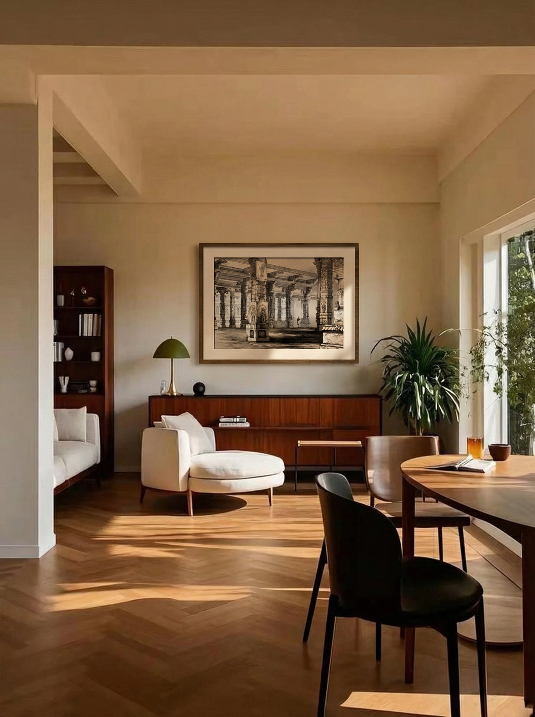 Ideal for living rooms, studies, meditation corners, or design-led interiors, this artwork introduces calm structure and cultural depth. It anchors a space with quiet authority, reminding us that true design speaks softly and endures.