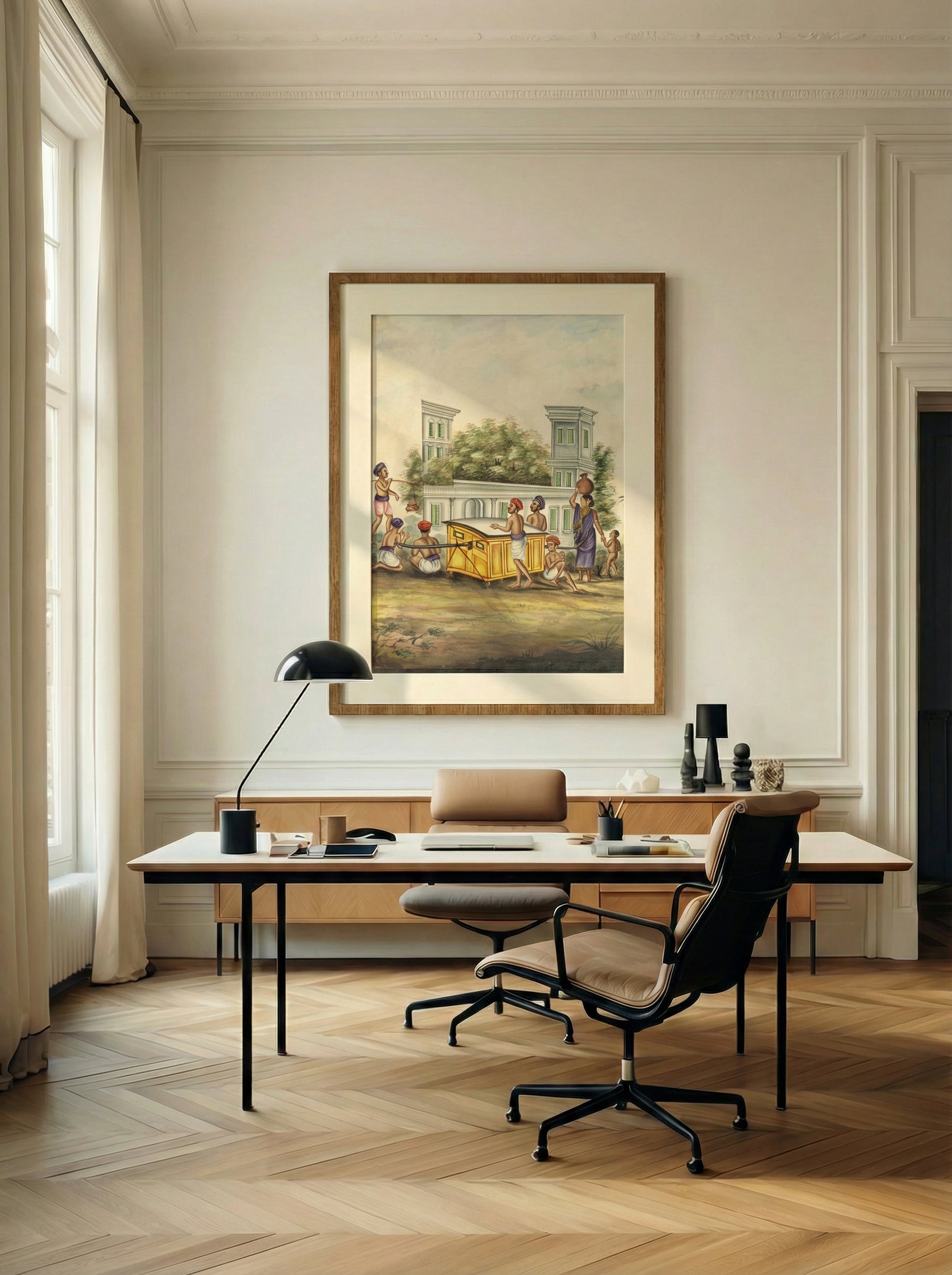 This piece sits beautifully in living rooms, corridors, libraries, or workspaces where cultural depth and calm movement are welcome. It pairs effortlessly with both contemporary and heritage interiors, inviting reflection on how communities carry tradition forward through shared effort. More than wall art, it becomes a quiet tribute to continuity, cooperation, and lived culture.