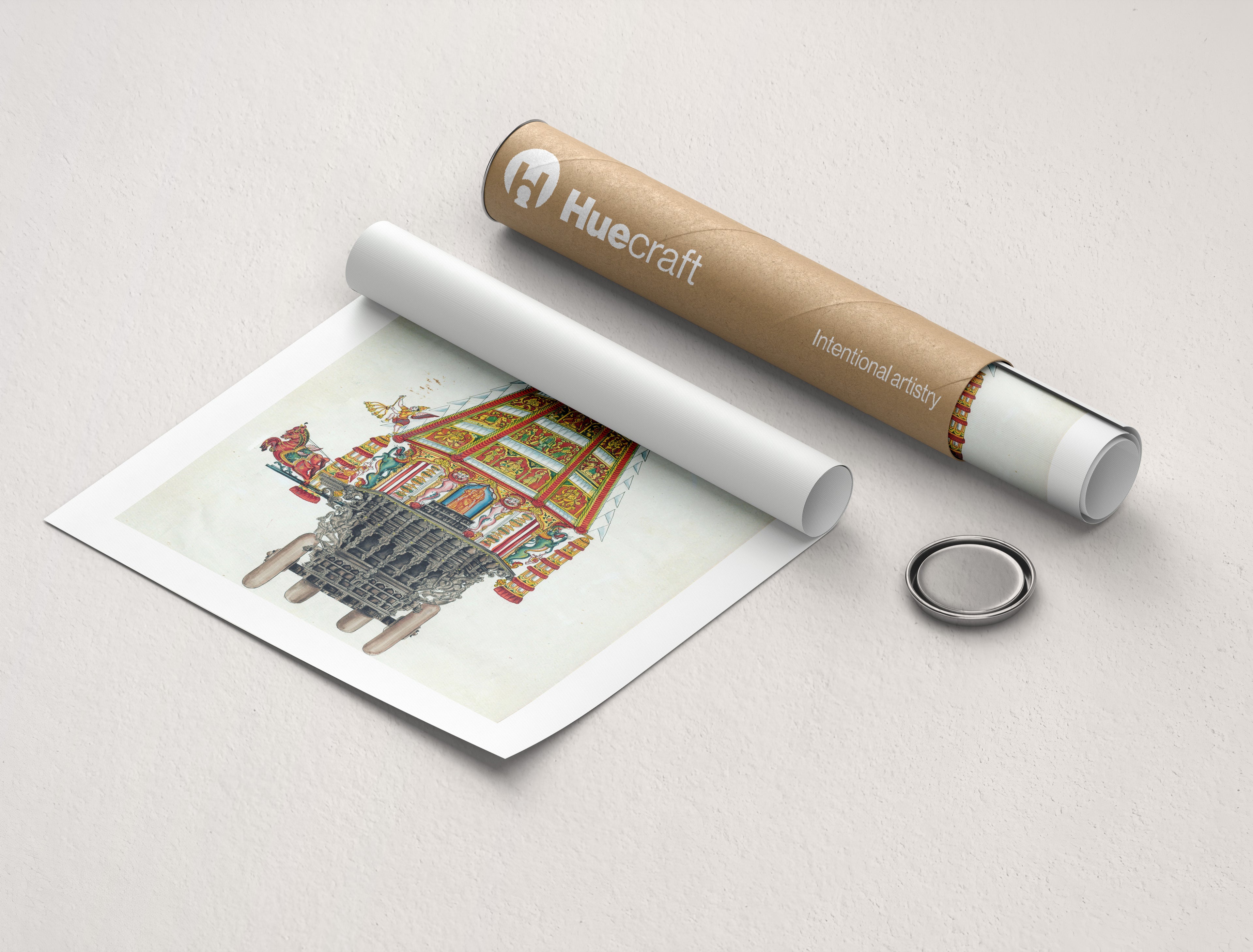 Reproduced as a Huecraft archival art print, this piece is crafted using museum-grade inks on premium fine-art paper to ensure lasting colour depth and line clarity. Every detail, from the carved tiers to the ceremonial figures, is preserved with gallery-quality fidelity.