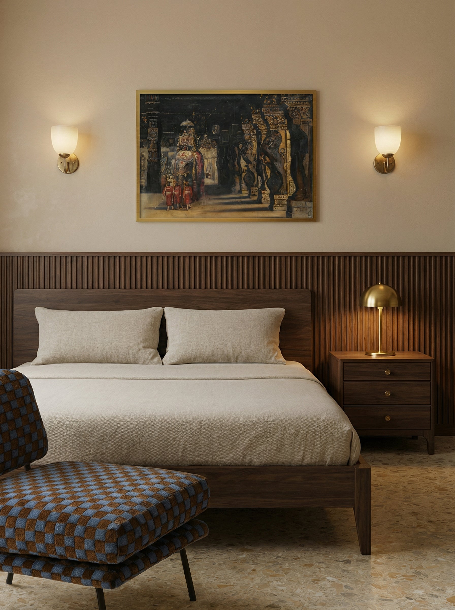 Perfect for living rooms, studies, meditation spaces, dining areas, or curated commercial interiors, this artwork brings quiet drama and cultural depth to modern home décor. It pairs beautifully with warm lighting, neutral walls, and spaces that value story-driven design.