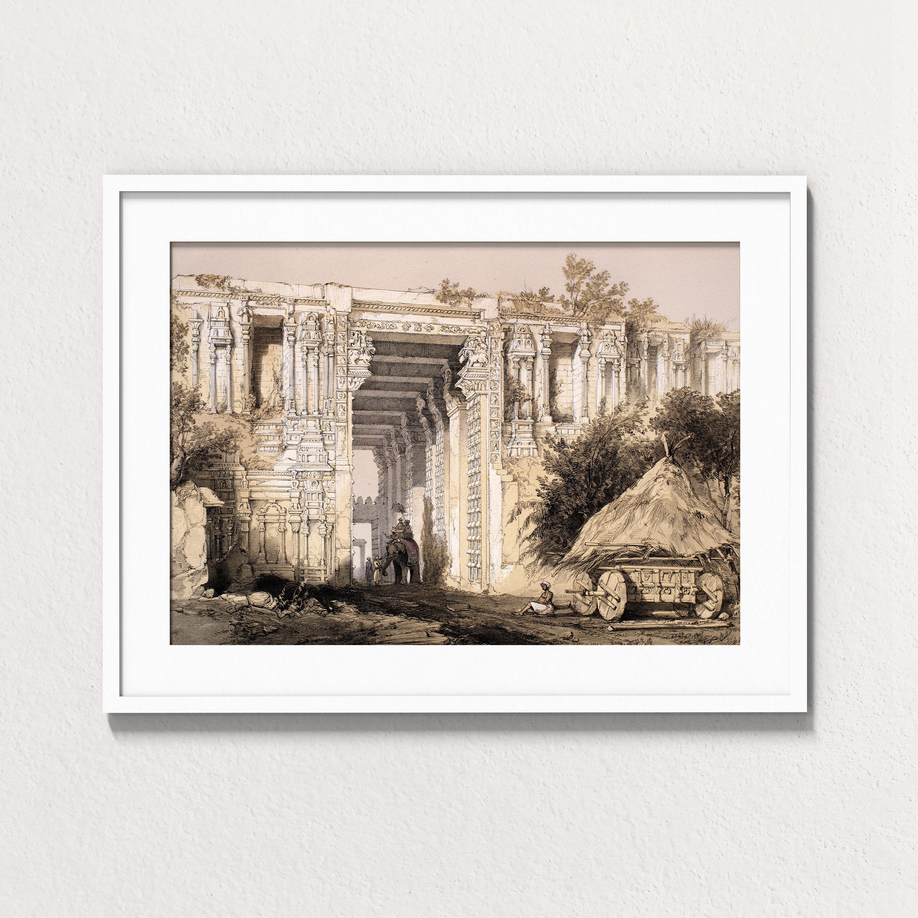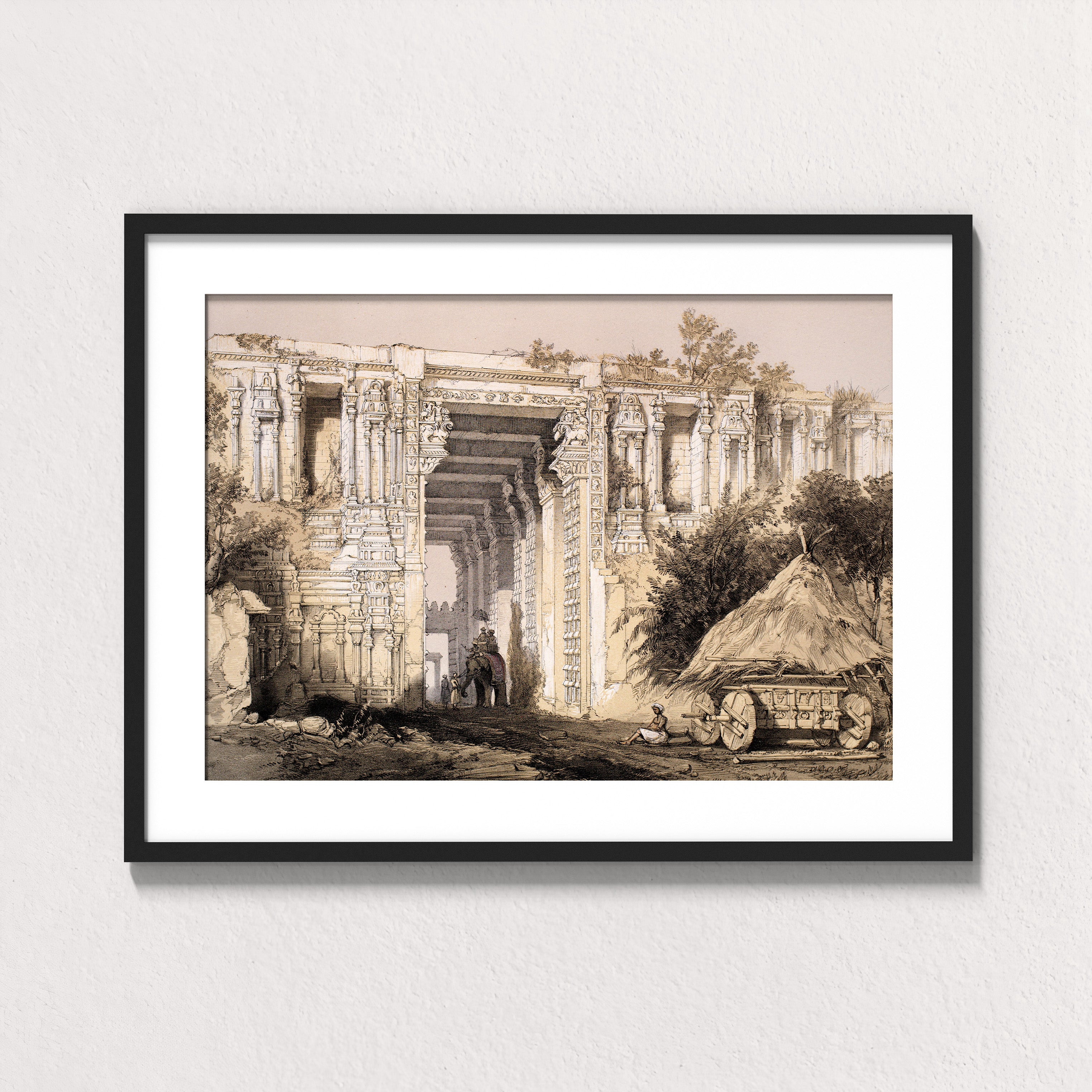 Thomas Colman Dibdin’s draughtsmanship captures the Dravidian temple idiom with precision and restraint. Every pillar speaks of engineering discipline, while the encroaching foliage and worn surfaces remind us that devotion is not frozen in stone. It matures, erodes, and adapts alongside human life.